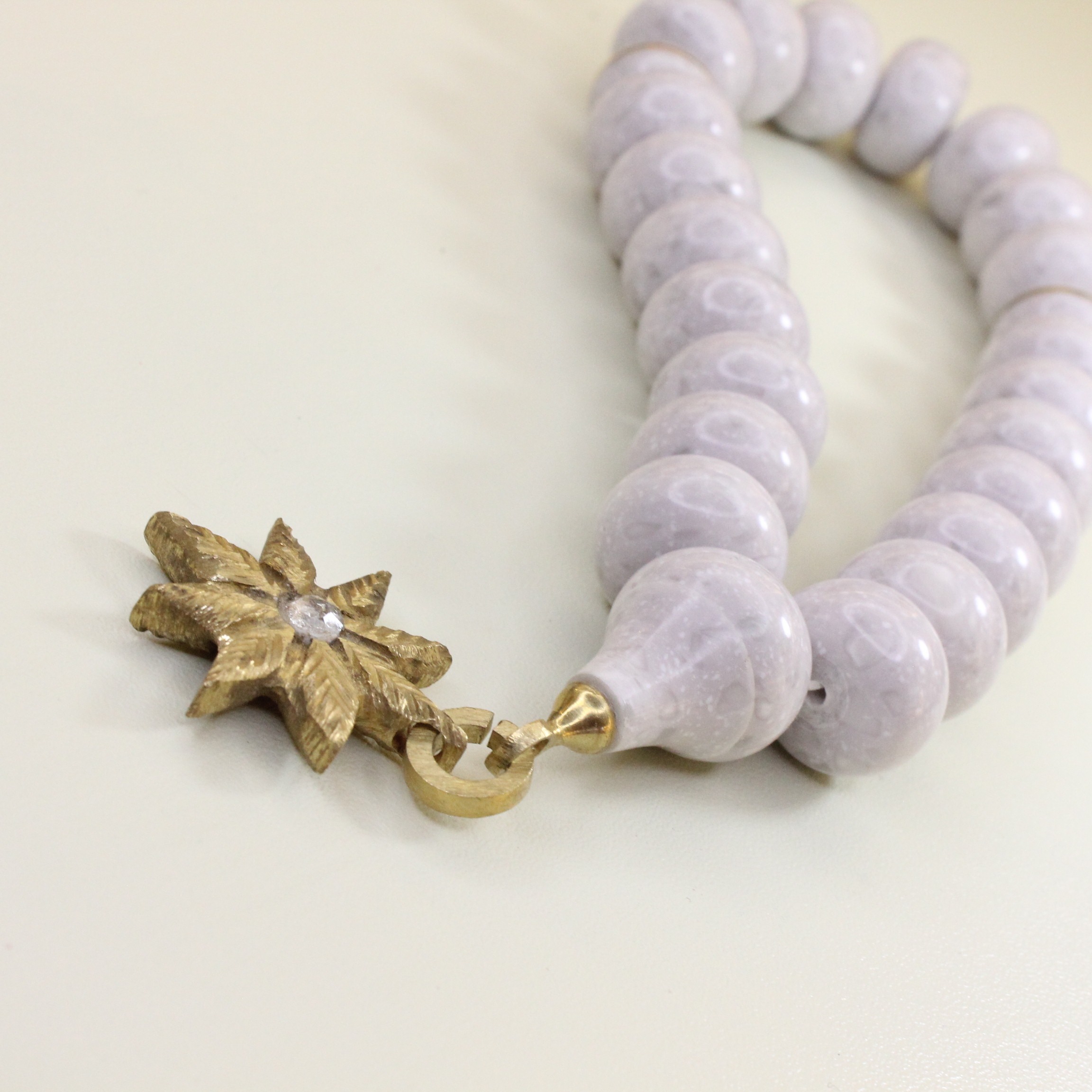 zərif və funksional bir modeldir. Təsbeh dənələri tam ağ mərmərdən hazırlanır və dənələrin üzərində heç bir
