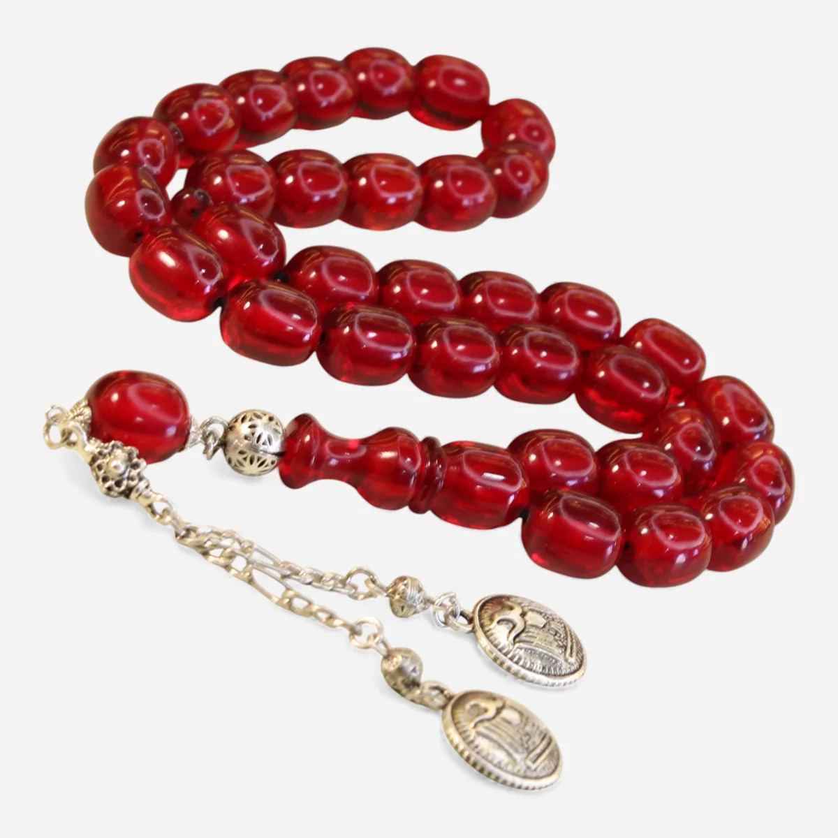 Bu məhsul, ənənəvi təsbeh hazırlama üslubuna sadiq qalaraq hazırlanmış qırmızı neon rəngli osmanlı bənzətmə təsbehdir. Təsbeh həm istifadə məqsədinə, həm də gündəlik aksessuar kimi uyğun gələn sadə və funksional bir quruluşa malikdir. Qırmızı neon tonları sayəsində məhsul rəng baxımından diqqətçəkən görünüş təqdim edir, lakin ümumi dizayn klassik formadan uzaqlaşmadan, balanslı bir görünüş saxlayır.