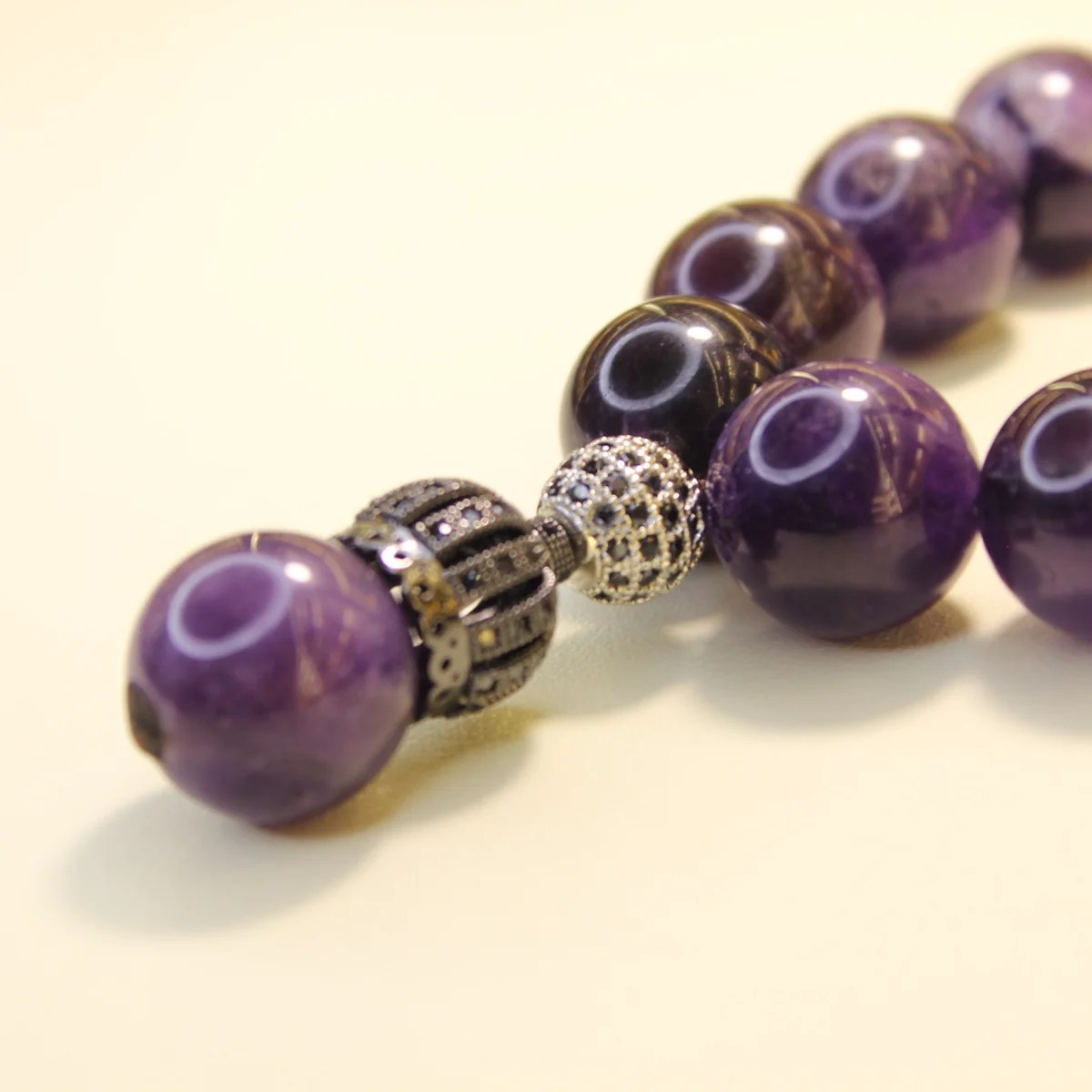 Ametistdən hazırlanmış bu təsbeh, həm gündəlik istifadə, həm də hədiyyə üçün uyğun olan zərif və estetik bir aksesuardır.