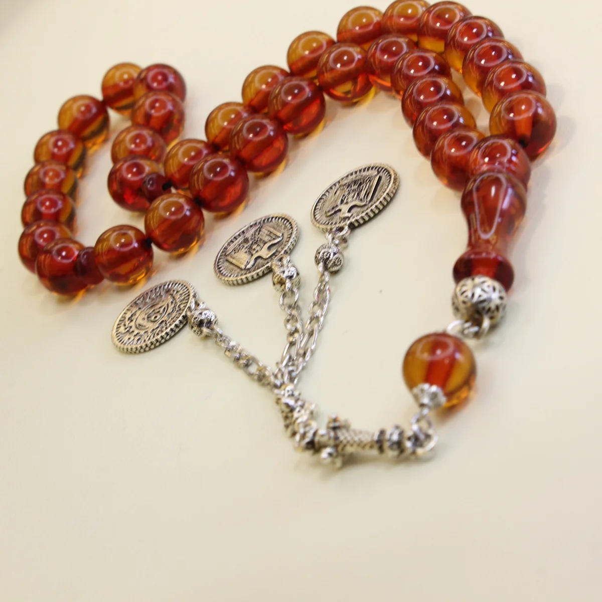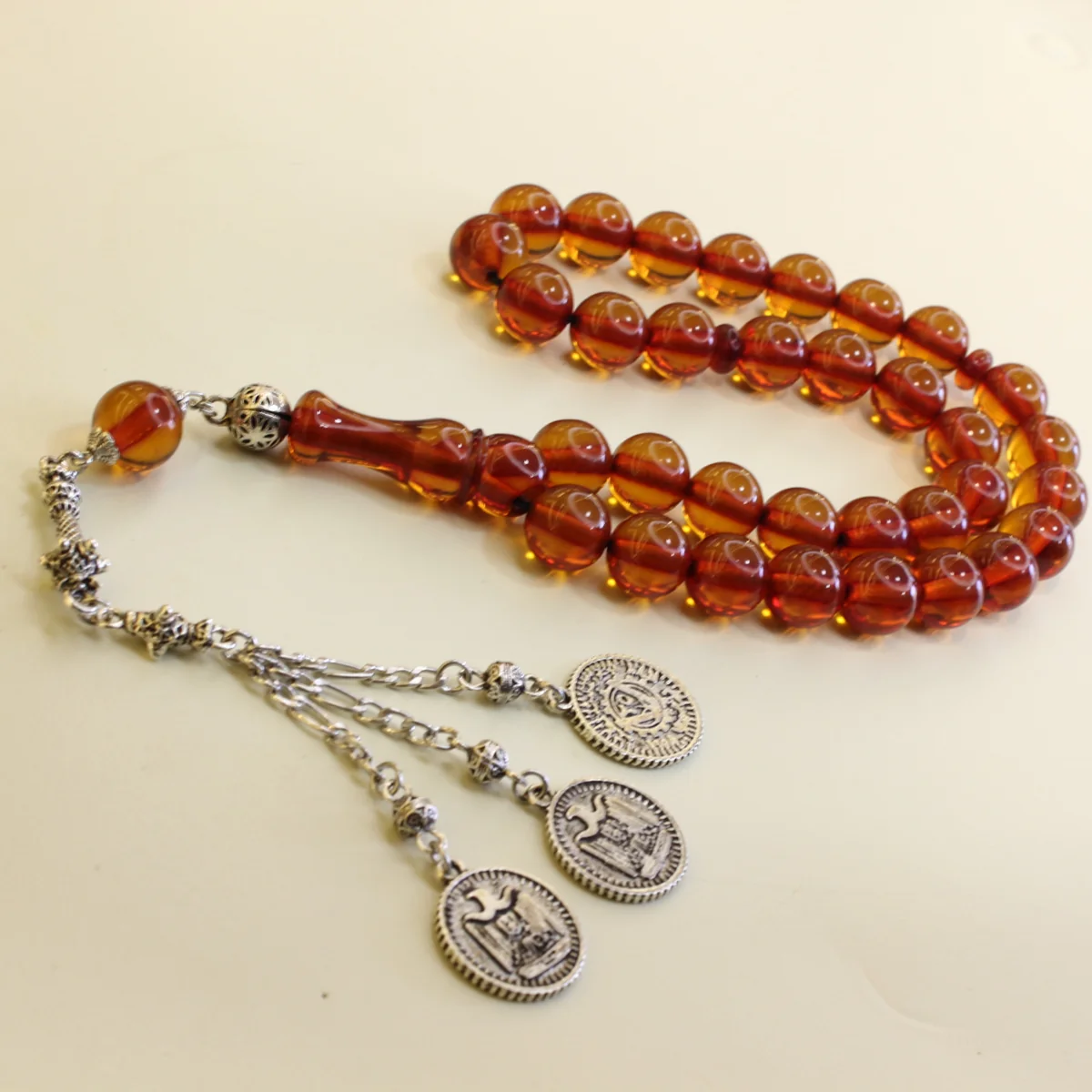 - Sıxma kəhrəba dənələri ilə hazırlanmış premium təsbeh modeli