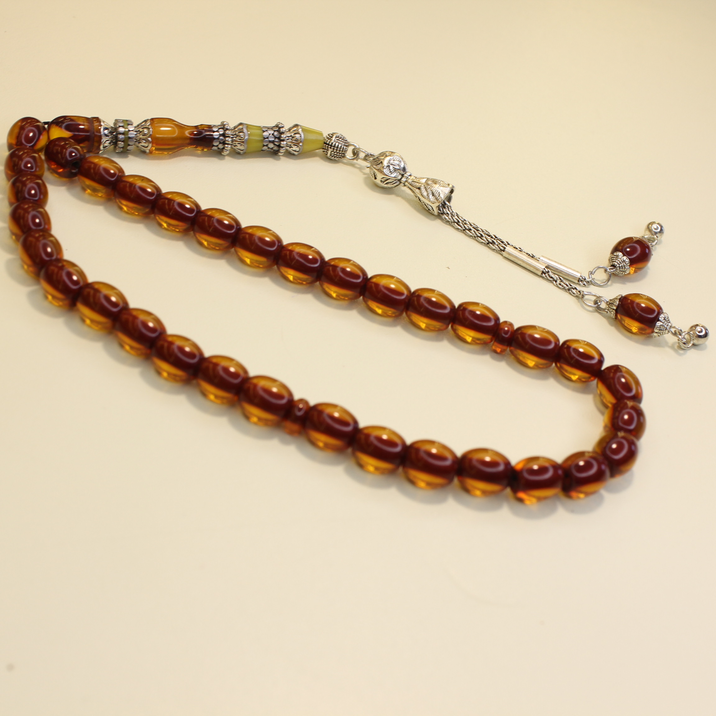 Sıxma kəhrəba materialının yüngül və davamlı quruluşu sayəsində təsbeh istifadəsi
