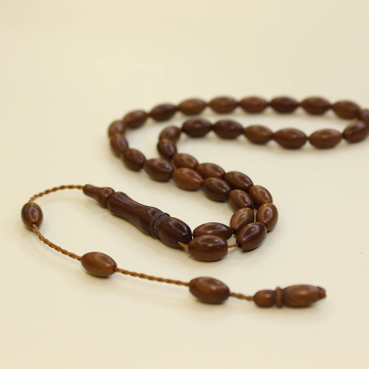 Kuka Təsbeh – Zərif Silindir Kəsim, Əl İşləməsi Taxta Dizayn (11×6 mm, 33 Dənə)