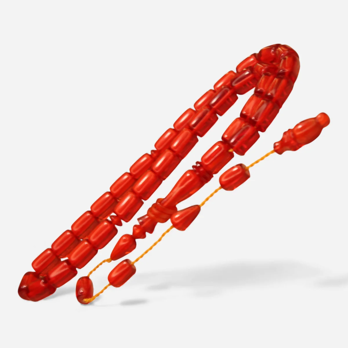 Qırmızı Silindrik Kəsim Halqalı İmaməli Sıxma Kəhrəba Təsbeh