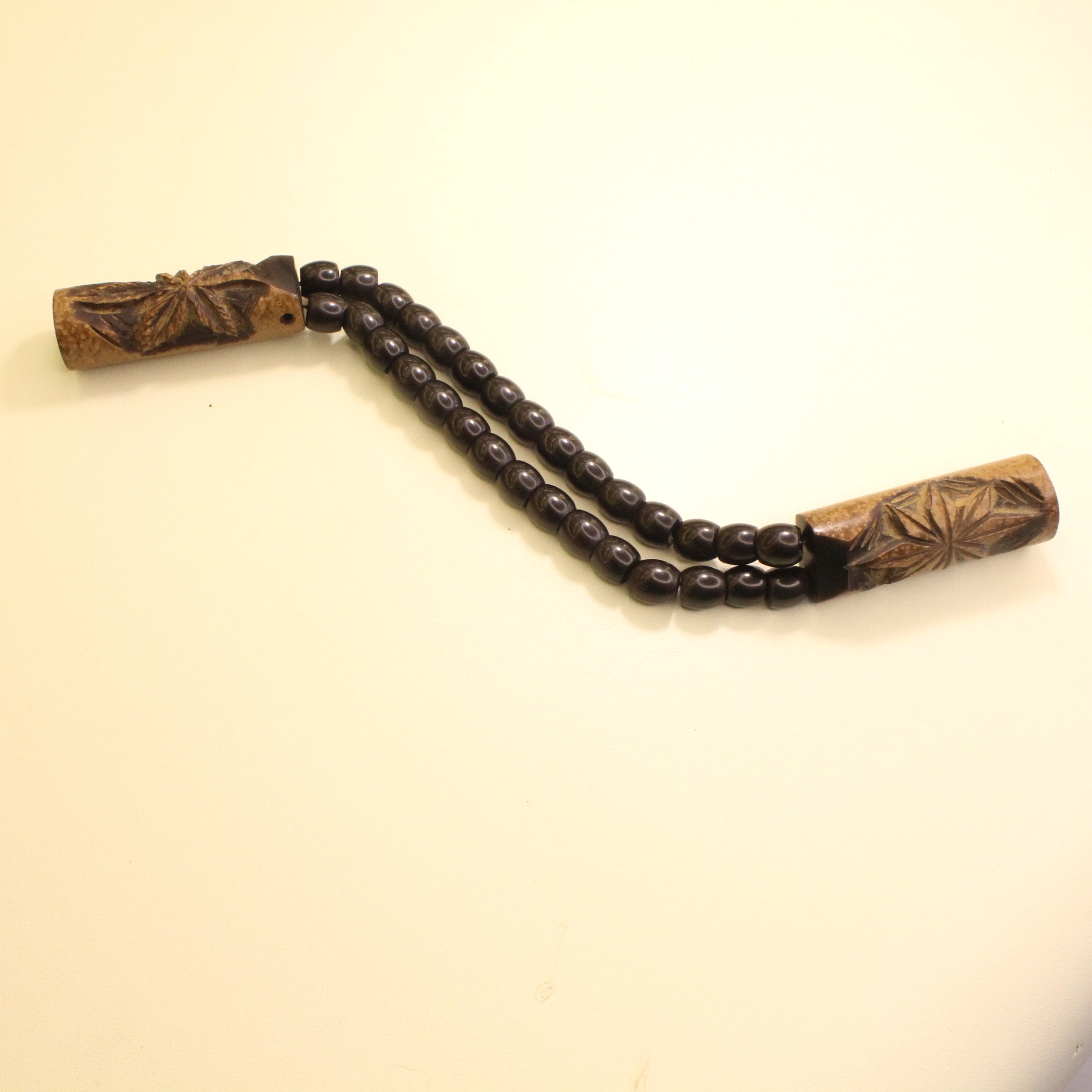 neytral rəng tonlarına sahib ebonit təsbeh qabarıq görünmədən öz yerini tapır. Əl işçiliyi ilə hazırlanması səbəbilə